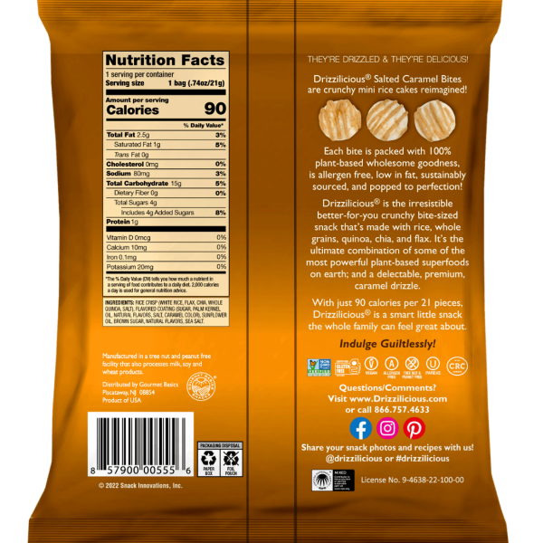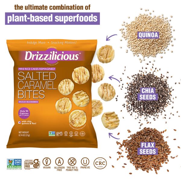Our Drizzilicious Salted Caramel bites are mini rice cakes reimagined!