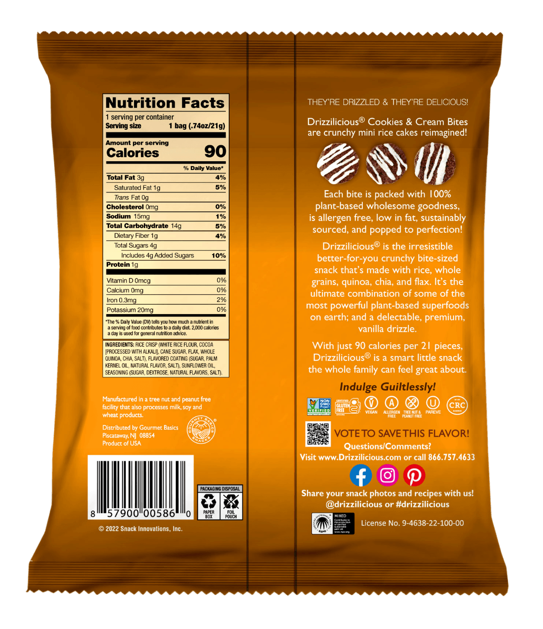 Our Drizzilicious?Cookies & Cream bites are mini rice cakes reimagined!